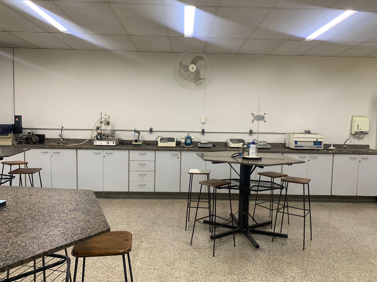 esquerda Sobre o laboratório: Laboratório de Química e Bioquímica: Um espaço destinado à realização de exames que exploram o funcionamento dos processos metabólicos do corpo, equipado com uma infraestrutura completa para o estudo da química. Nesse ambiente, os equipamentos são capazes de quantificar e descrever quimicamente tanto as mudanças normais quanto as patológicas.