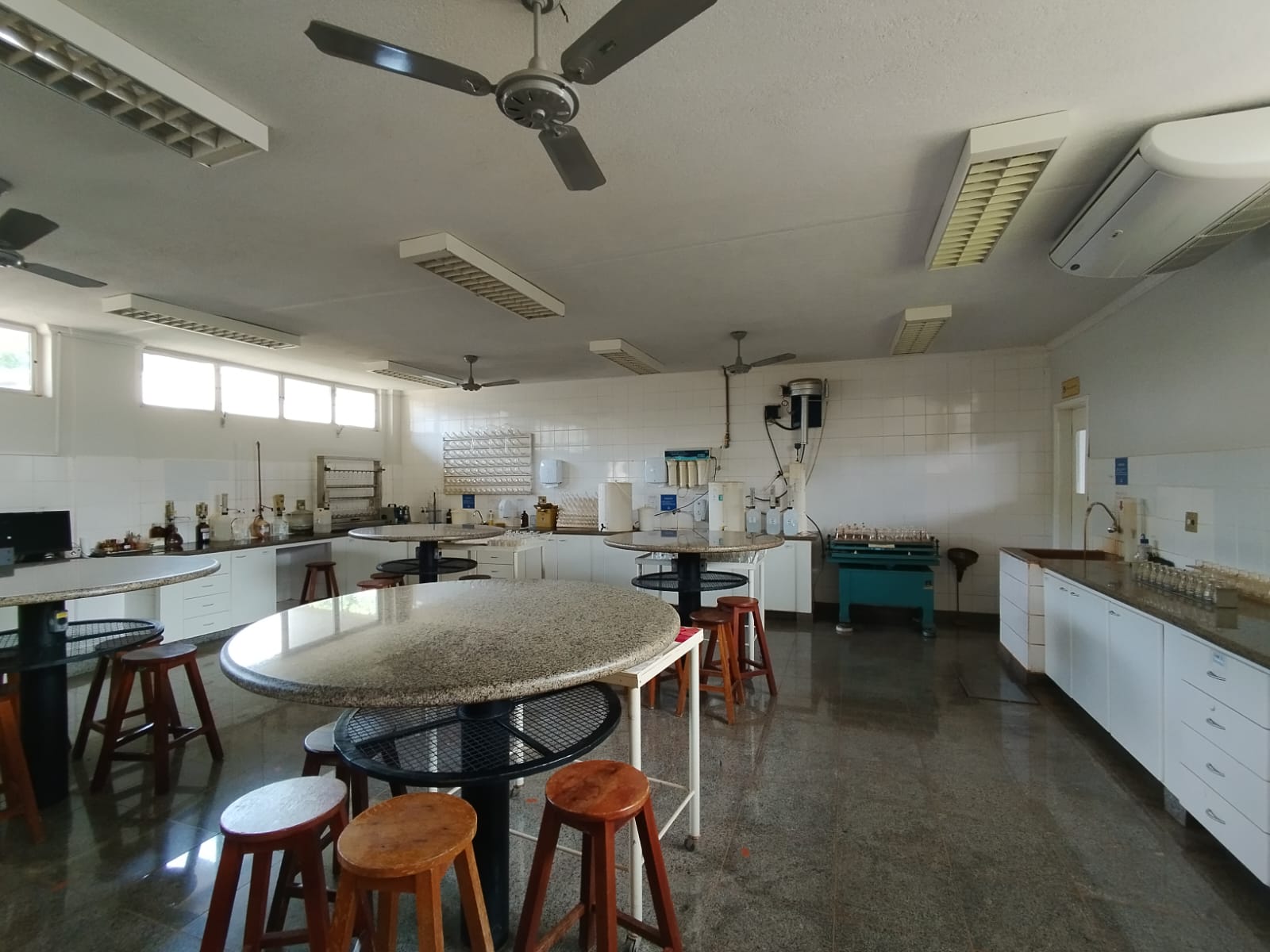 Neste laboratório são realizadas análises de fertilidade dos solos, incluindo granulometria, macronutrientes e matéria orgânica. Além disso, são realizadas tanto práticas de análise físico-química do solo quanto de titulações e extração de nematóides.